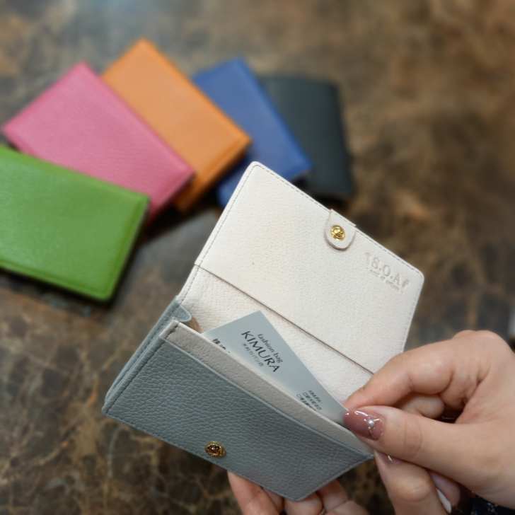 20色のカラーレザーを使用した、シンプルな名刺入れです。